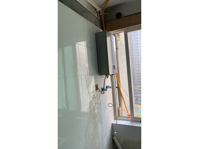 5、美的热水器RS5和TX7安装很及时,但吊顶铝板孔未开,燃气管未接,暂时自行手工临时套上。均需其它专业人员来安装,增加20公分排气管一根,29元。